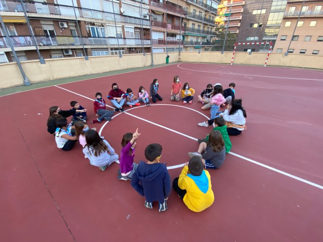 El grup de guineus va aprofitar el dia de l’amic per sortir fora de l’escola a fer l’activitat. Van fer una tarda variada de jocs de cohesió de grup i coneixença de l’esplai. S’ho van passar d’allò més bé jugant al pistoler, al mocador, al tot si val… Van ballar danses típiques de l’esplai com l’emapaparrusca i van cantar molt fort amb el joc del ”furor”. Per acabar van visitar un últim parc per a jugar a un picaparet gegant d’allò més divertit.