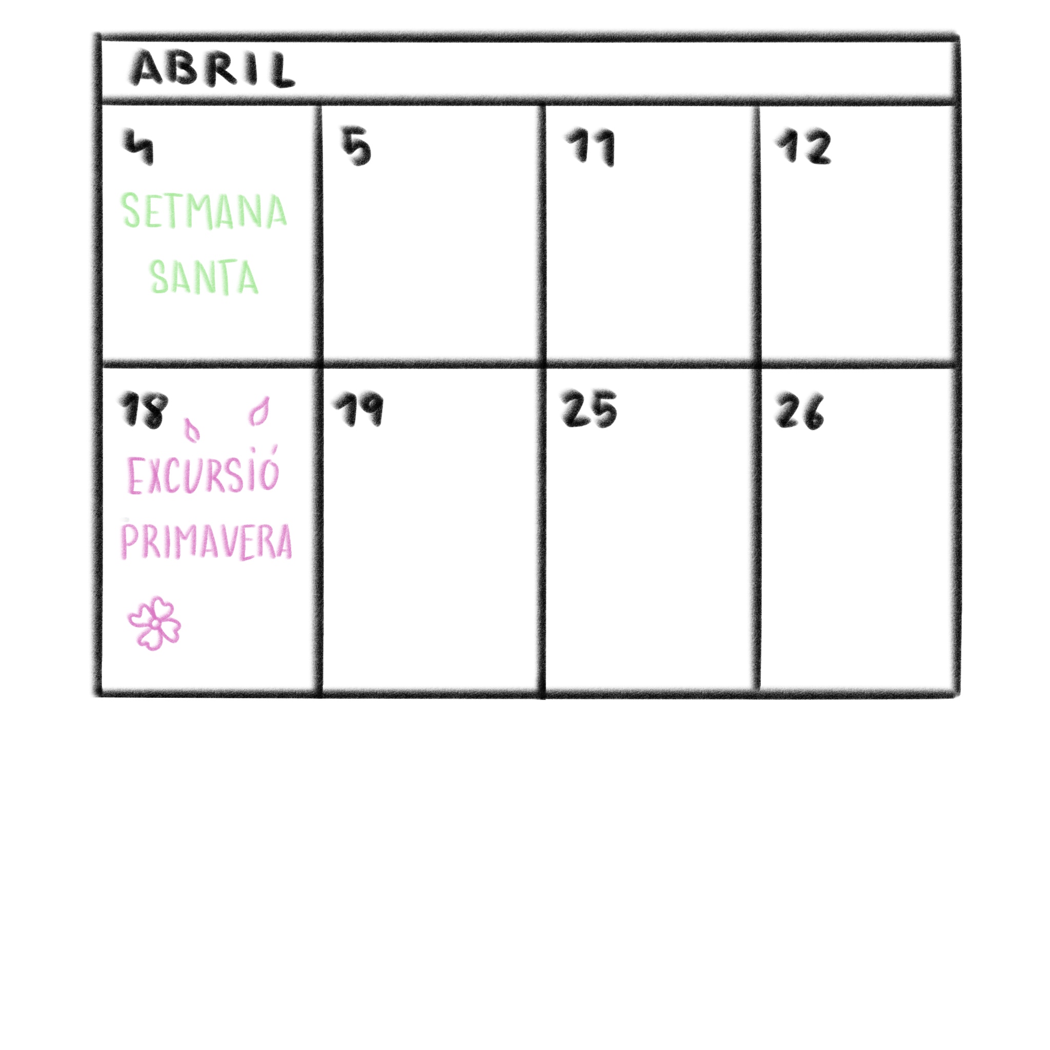 Nota: *Els dies marcats com a Festa no hi ha esplai.